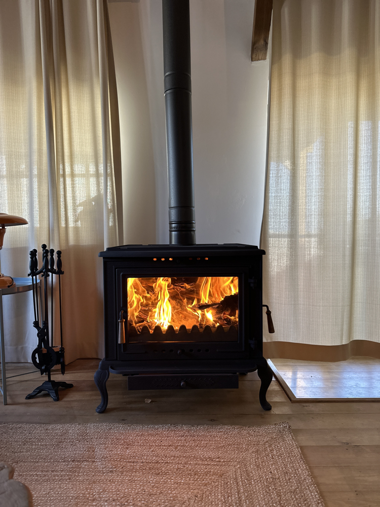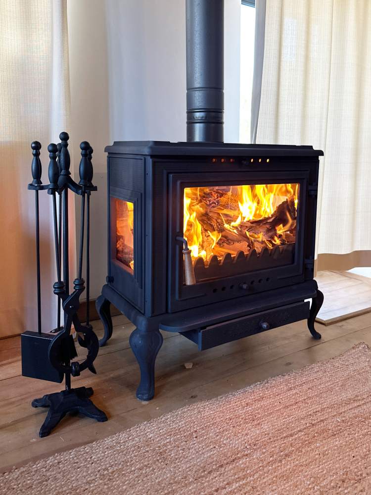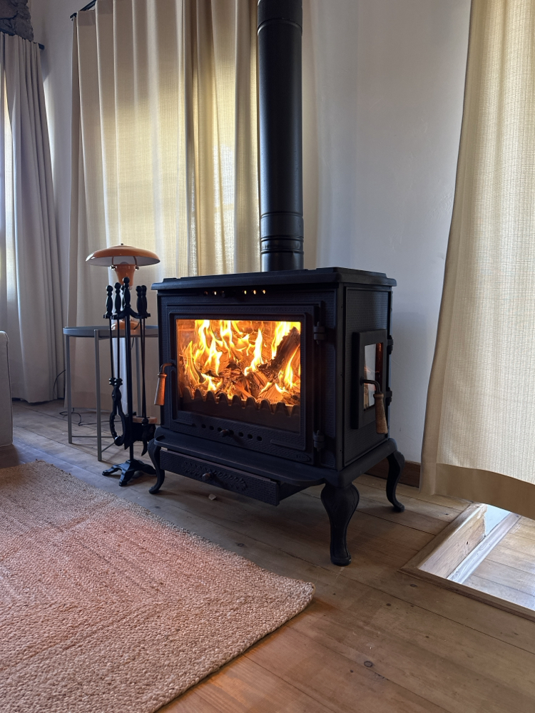 Efe 2 Şömine Soba 36H Tamamen Döküm Yan cam Yan kapak Dıştan küllük Geniş cam 45x75x70 cm 110 kg